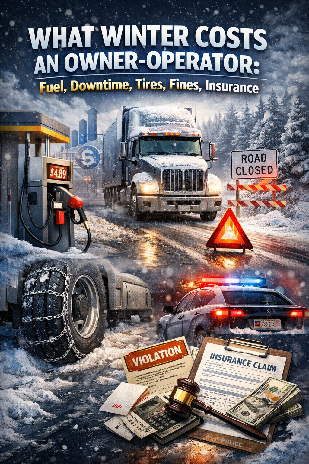 The main purpose of this article is to show the owner-operator how much winter really costs, focusing on fuel, downtime, tires, fines, insurance, and the hidden expenses that come with cold weather trucking.