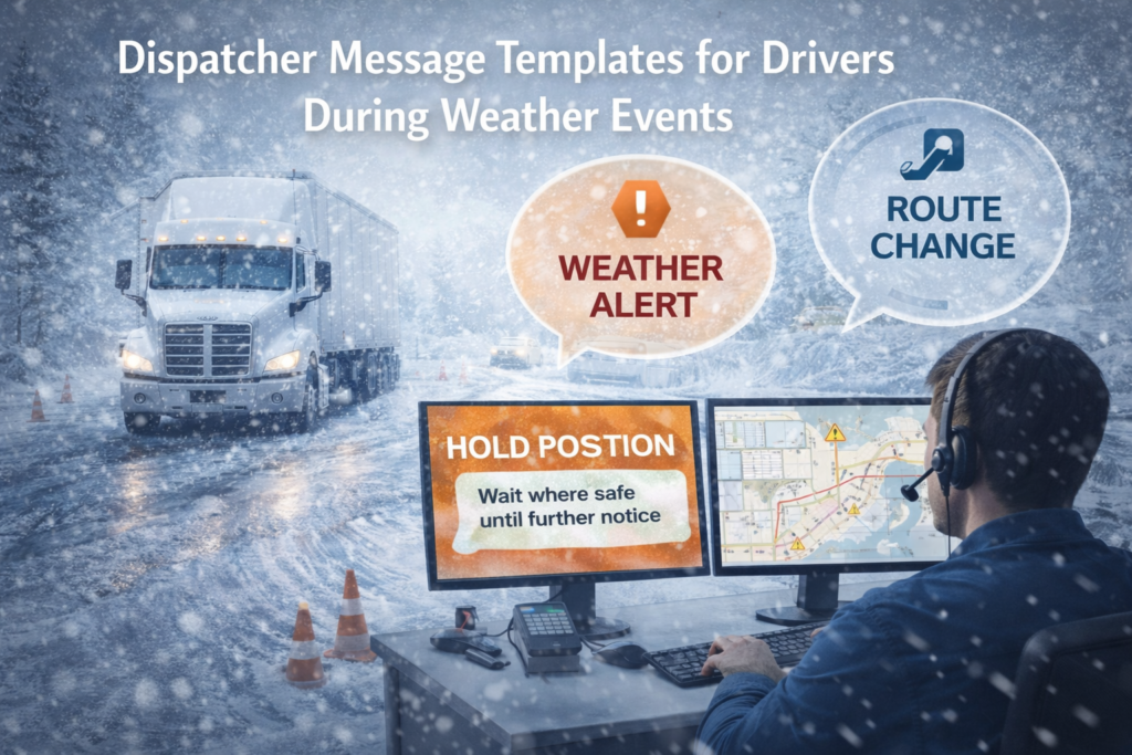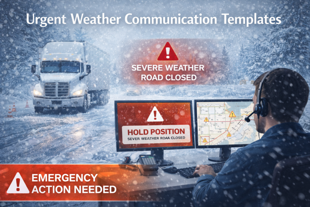 Dispatcher messages must be direct and supportive. Ambiguous instructions increase risk. Each dispatcher message during weather disruptions must remain short, factual, and focused on safety rather than operational pressure. Weather Alert to Driver. Dispatch Notice: Weather conditions ahead may affect road safety. Use discretion, reduce speed as needed, and avoid unsafe segments. Dispatch is monitoring conditions. A timely weather alert helps drivers adjust decisions early instead of reacting when road conditions have already deteriorated. Instruction to Hold Position. Dispatch Update: Due to deteriorating road conditions, please stage at the nearest safe location. This is a safety-based decision. Await further instructions. Route Change Notification. Dispatch Notice: Current weather requires a route adjustment. Do not proceed on the original route. Updated routing will follow once confirmed.